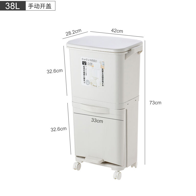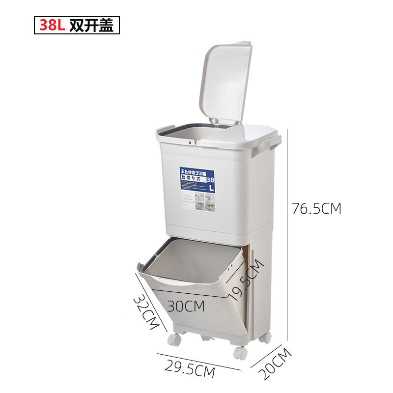 Garbage Classification Household Double-Layer Trash Can Dry Wet Separation Dustbin Japanese-Style Large Kitchen Trash Can with Lid