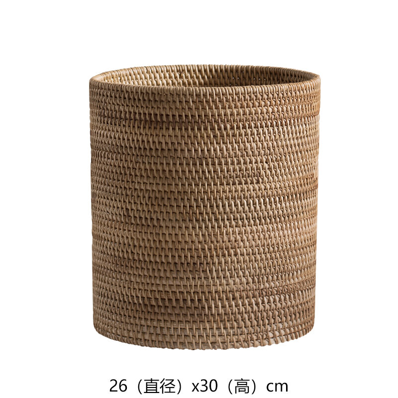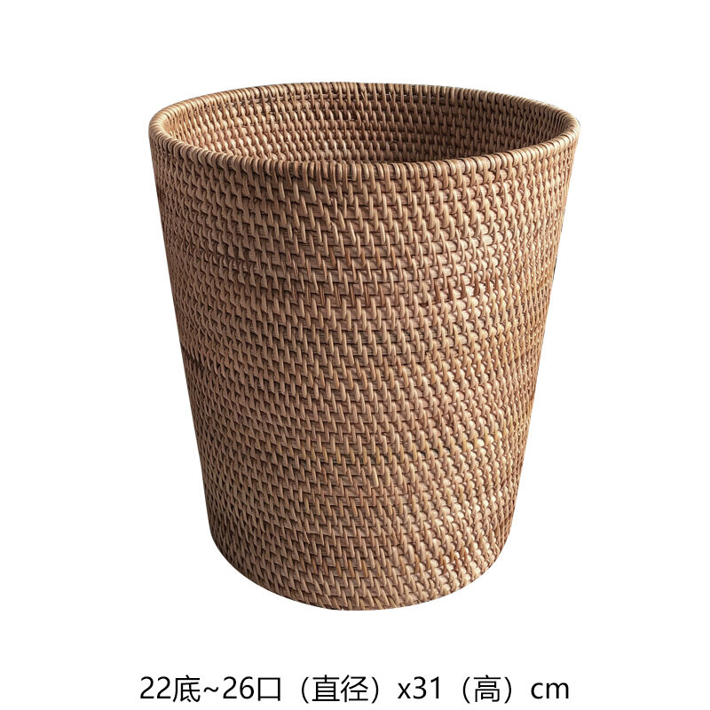 Solid Wood Rattan Household Living Room Trash Can round Bedroom Vintage Storage Bucket Handmade Personalized Study Desktop Paper Basket