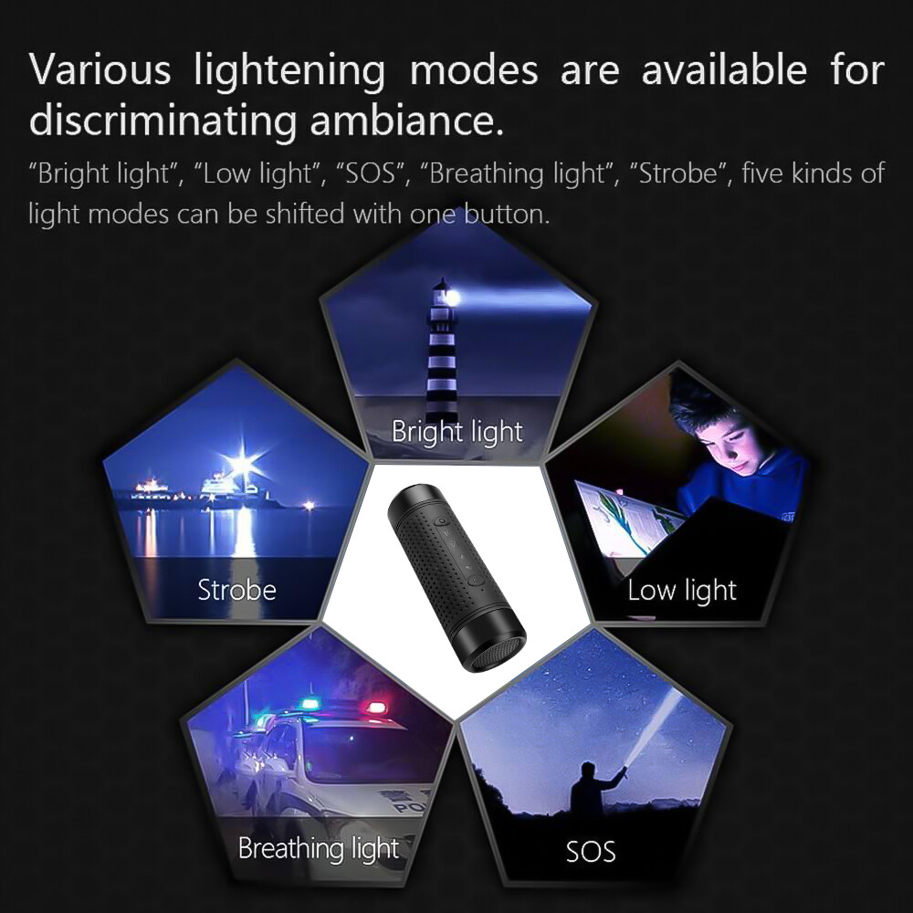• “Bright light”, “Low light”, “SOS”, “Breathing light”, “Strobe”, five kinds of light modes can be shifted with one button.