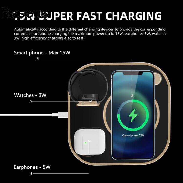 Baseus B-18 4 in 1 Folding Charging Dock Magnetic Wireless Charger with USB Output for Smartphone / Smart Watch / Earphones