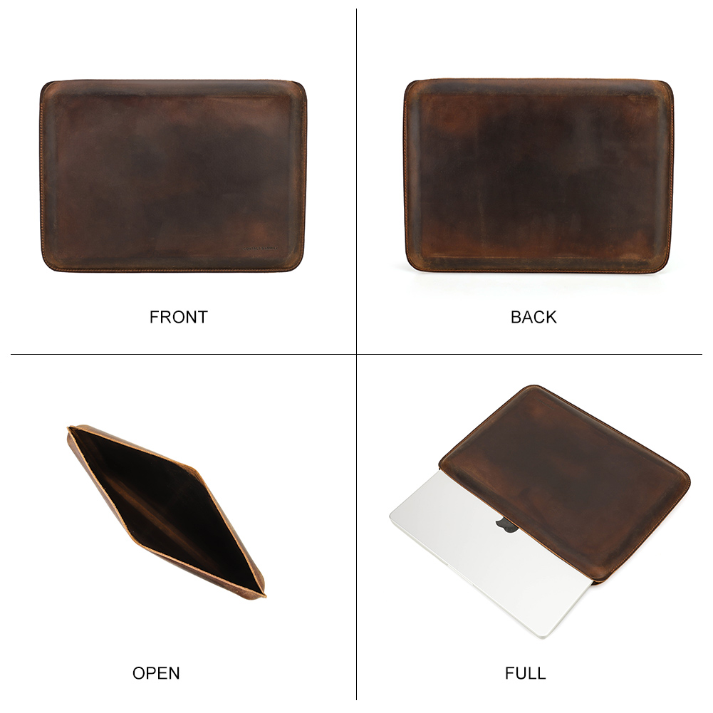Genuine Leather Laptop Sleeve Case for MacBook Pro 14.2/16.2 Inch 2021 Crazy Horse Leather Sleeve Cover Bag