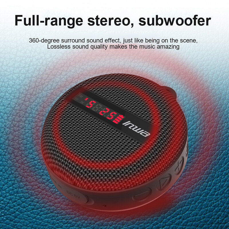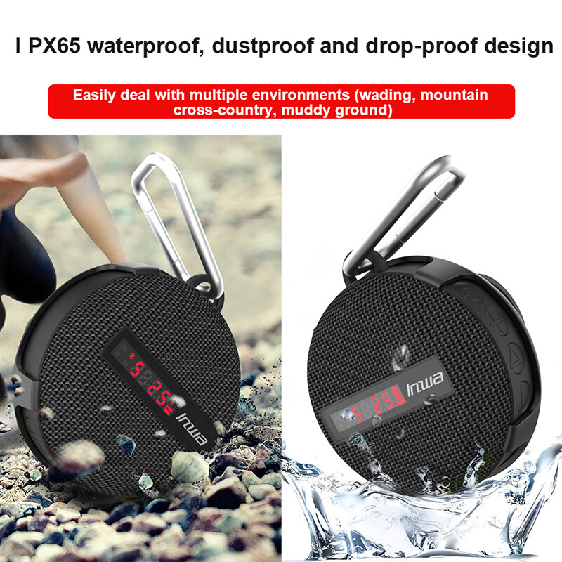 4. Portable and compact design: Appearance size: 93*87*47mm, this mini bluetooth-compatible speaker can be easily carried with you. And with a metal hook, it is more convenient to carry when traveling.