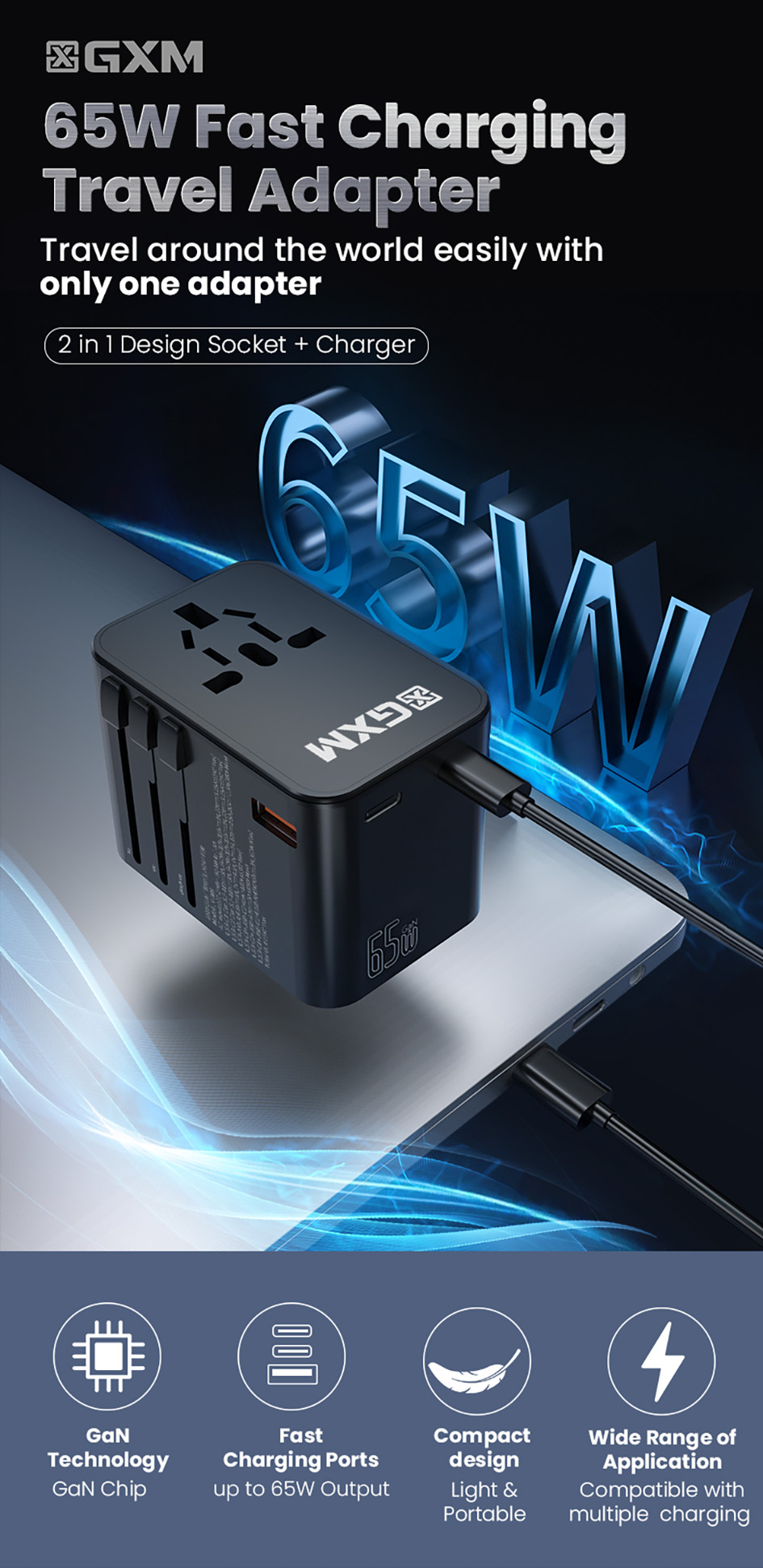 65W Fast Charging Travel Adapter