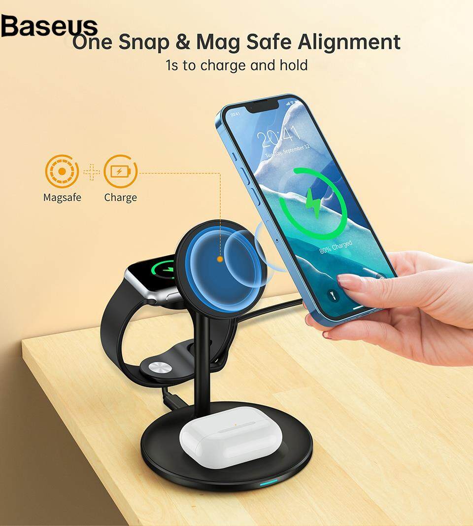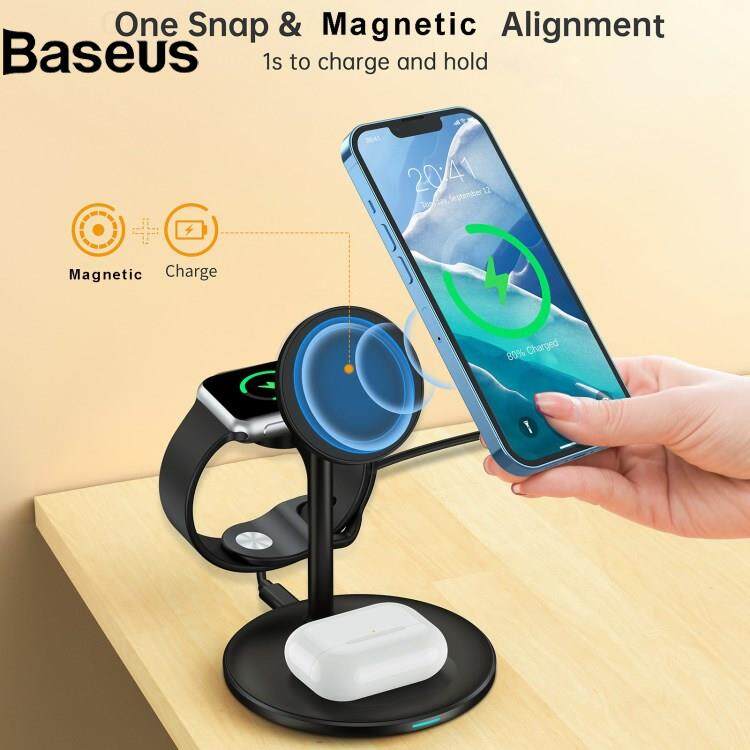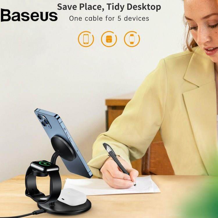 Baseus JJT-980 Desktop Charging Stand 3 in 1 Detachable Magnetic Wireless Charger for iPhone / Apple Watch / Earphones
