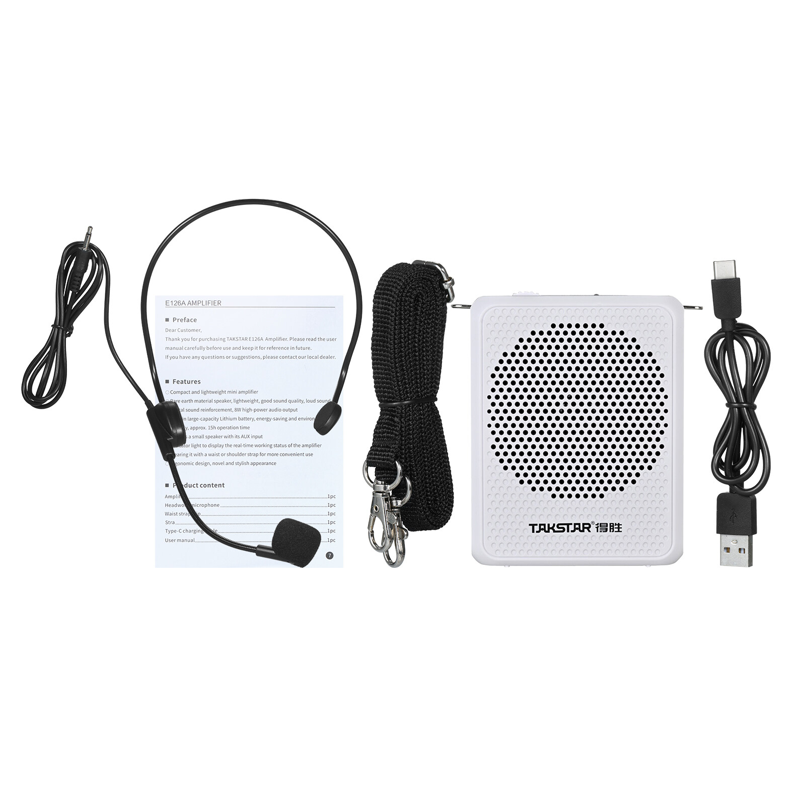dodocool TAKSTAR E126A Sound Amplifier Portable Rechargeable Mini Voice Amplifier with Wired Headmount Microphone & Waistband for for Teaching Singing Training Presentation