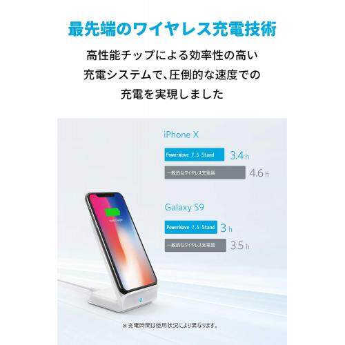 Anker PowerWave 7.5 Stand Wireless Charger Qi Certification iPhone 12/12 Pro Galaxy Various Supports Up to 10W Output (White)