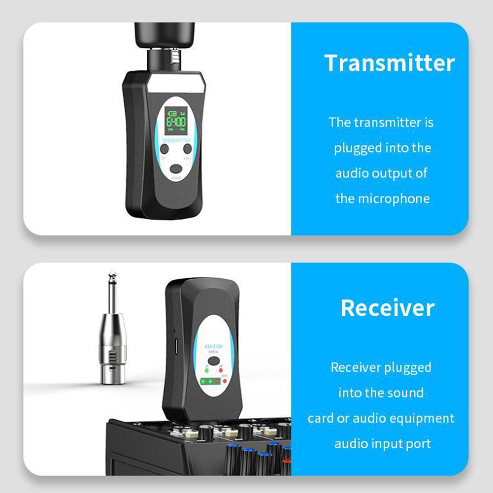 1. Advantages and Scenarios: The microphone wireless transceiver solves the wireless audio signal transmission between the microphone and the audio, the mixer, and the sound card, realizing the expansion effect of wireless audio transmission, and solving the traditional wiring mode. This product is suitable for stage performances, outdoor entertainment, speeches, outdoor performances, and other places