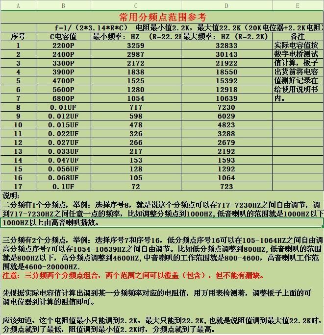 {"api":"mtop...","data":{"":[{"name":"Color Classification","value":"Red, Blue, green"}],"":"","":{"":[],"pages":["\u003e shock launch! Front-level electronic Three-frequency board with direct adjustable frequency division point! \u003c/txt\u003e "," \u003e which frequency division point do you want? Just adjust it by hand! \u003c/txt\u003e "," \u003e,\u003c/txt\u003e "," \u003e can \u003c/txt\u003e ","\\u003e provides some information about the finished machine for your reference, including the seller's link address of all aluminum alloy chassis, the opening size of the front and rear panels, the opening size of the bottom plate, technical information on the procurement and manufacture of assembly parts. \u003c/txt\u003e "," \u003e copy this link to browse the introduction of previous complete machines. For more information, see \u003c/txt\u003e ","\\u003e in the second half of this page, some information about the finished machine will be displayed. Friends who need information will leave their email address to you after taking the board,\u003c/txt\u003e "," \u003e no information will be sent if you do not order,\u003c/txt\u003e "," \u003e please understand. \u003c/txt\u003e "," \u003e information includes the following documents for reference:\u003c/txt\u003e ","\u003cimg size = 835 x110\u003e // img. Awesome_!! . jpg\u003c/img\u003e "," \u003e product introduction:\u003c/txt\u003e ","\\u003e this is a recent fever work of Mr. linquetz, an internationally famous sound master, which has become popular in European and American countries, the biggest highlight is that you can change the frequency division of the three-frequency board without changing components, which brings great convenience to friends who want to change but are difficult to grasp the frequency division point of their speakers. It can easily adjust the frequency division of the board output. By listening carefully and constantly changing the frequency division, you can find the frequency division point that you are satisfied, make your sound system play the best effect incisively and vividly. \u003c/txt\u003e "," \u003e a digital multimeter, plus simple computing (can provide you with computing tools and software), just adjust the resistance of potentiometer to the calculated value, accurate to HZ. \u003c/txt\u003e "," \u003e the introduction to this frequency division board seems cumbersome, but it is actually very simple, but it is still not recommended for pure music enthusiasts who do not have any electronic Foundation, because they may connect the most basic frequency calculation formula \u003c/txt\u003e "," \\= 1/(2*3.14 * R * C)\u003c/txt\u003e "," \u003e does not know how to master. This frequency division board is equipped with detailed debugging instructions for your reference. \u003c/txt\u003e "," \u003e our famous linquitz. The Ruili filter circuit can be made through \u003c/txt\u003e "," \u003e, and this adjustable three-frequency board is designed by a master, the former has been popular for 40 years. This excellent circuit aims to solve the problems of friends around the world. You don't have to question the circuit principle. It comes from master linquitz and is excellent! Practical! You will be very satisfied! \u003c/txt\u003e "," \u003e this circuit uses \u003c/txt\u003e "," \u003e state variable filter \u003c/txt\u003e ","\\u003e achieves frequency selection, rigorous design, strong theory, simple circuit, only need to change the potentiometer resistance can change the frequency division in a large range, most applications can be applicable. \u003c/txt\u003e" , "\\u003e about \u003c/txt\u003e","\u003e state variable filter technical information, you can Baidu, there are many introductions. \u003c/txt\u003e "," \u003e combined with the following figure to understand the structural characteristics of the frequency division board:\u003c/txt\u003e "," \u003e★The parallel power supply of Class A with excellent power supply characteristics is adopted to supply power to the board. The music details are more delicate and authentic, and the noise is almost unaudible;\u003c/txt\u003e "," \u003e★Choose the King of the operational amplifier imported from TI, you can change it to other dual operational amplifier with more fever \u003c/txt\u003e "," \u003e★WIMA capacitor, Thomson capacitor, Philips capacitor, Panasonic capacitor, Nikon capacitor, etc. are selected for signal coupling frequency division decoupling \u003c/txt\u003e "," \u003e★Brand BOCHEN 3296W multi-ring precision potentiometer, adjust up to 25 turns, so the resistance value can be more delicate to distinguish \u003c/txt\u003e "," \u003e★The layout is clear and clear, and the frequency division size can be adjusted perfectly without mastering the circuit \u003c/txt\u003e "," \u003e this product is recommended to use 15-30W ring or R-type transformer, AC output double 15V is OK, this board is not equipped with transformer. \u003c/txt\u003e "," \u003e setting of frequency division point:\u003c/txt\u003e "," \u003e under \u003e \u003c/txt\u003e ","\\u003e yellow table "common frequency division point range reference" \u003c/txt\u003e "," \u003e provides you with an alternative frequency division point range, you can select the frequency division range of two serial numbers according to your own speaker and personal preference or directly inform the seller that the seller will make the frequency division according to your requirements. If you do not specify, the seller will deliver the goods according to the default frequency division point. The Default Frequency Division point serial number is serial number 7 and serial number 16, that is, the low frequency division point can be adjusted between 105-1064Hz and the high frequency point can be adjusted between 1054-10639Hz. Please note. \u003c/txt\u003e ","\\u003e main technical parameters:\u003c/txt\u003e ","\\, filter type:\u003c/txt\u003e "," \\u003e state variable filter \u003c/txt\u003e ",