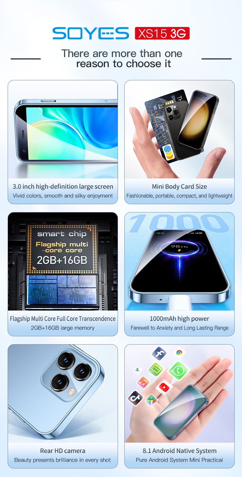 SOYES XS15 3G Smart Little Phone Android System Mini and Portable Flagship Configuration Dual SIM Dual Standby 3.0 Inch Display 2GB RAM 16GB ROM Smart Phone
