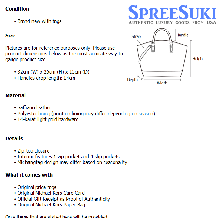 All our products are 100% authentic and purchased from Michael Kors stores in USA. We are a reputable registered business in Singapore and it is illegal to sell counterfeit goods in Singapore. This product also comes with a gift receipt which is printed by the Michael Kors store that we purchased the item from. It states the item that we purchased and the Michael Kors store that it was purchased from, proving the authenticity of the item. Buy with confidence.
