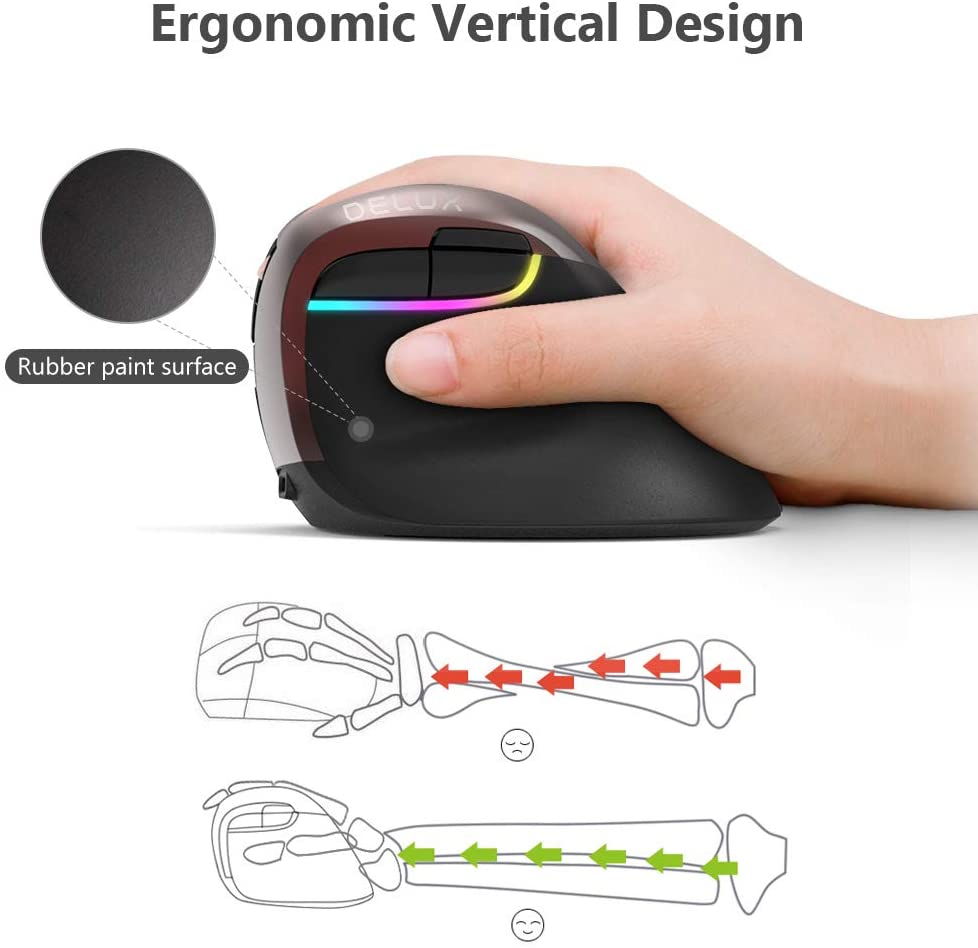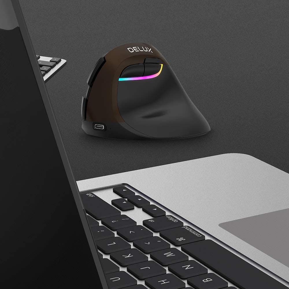 【11 11 Sales】Delux M618 Mini 4.0 2.4GHz dual model Wireless Vertical Mouse 4 Gear DPI RGB Ergonomic Rechargeable Silent click Mice for Office dard golden