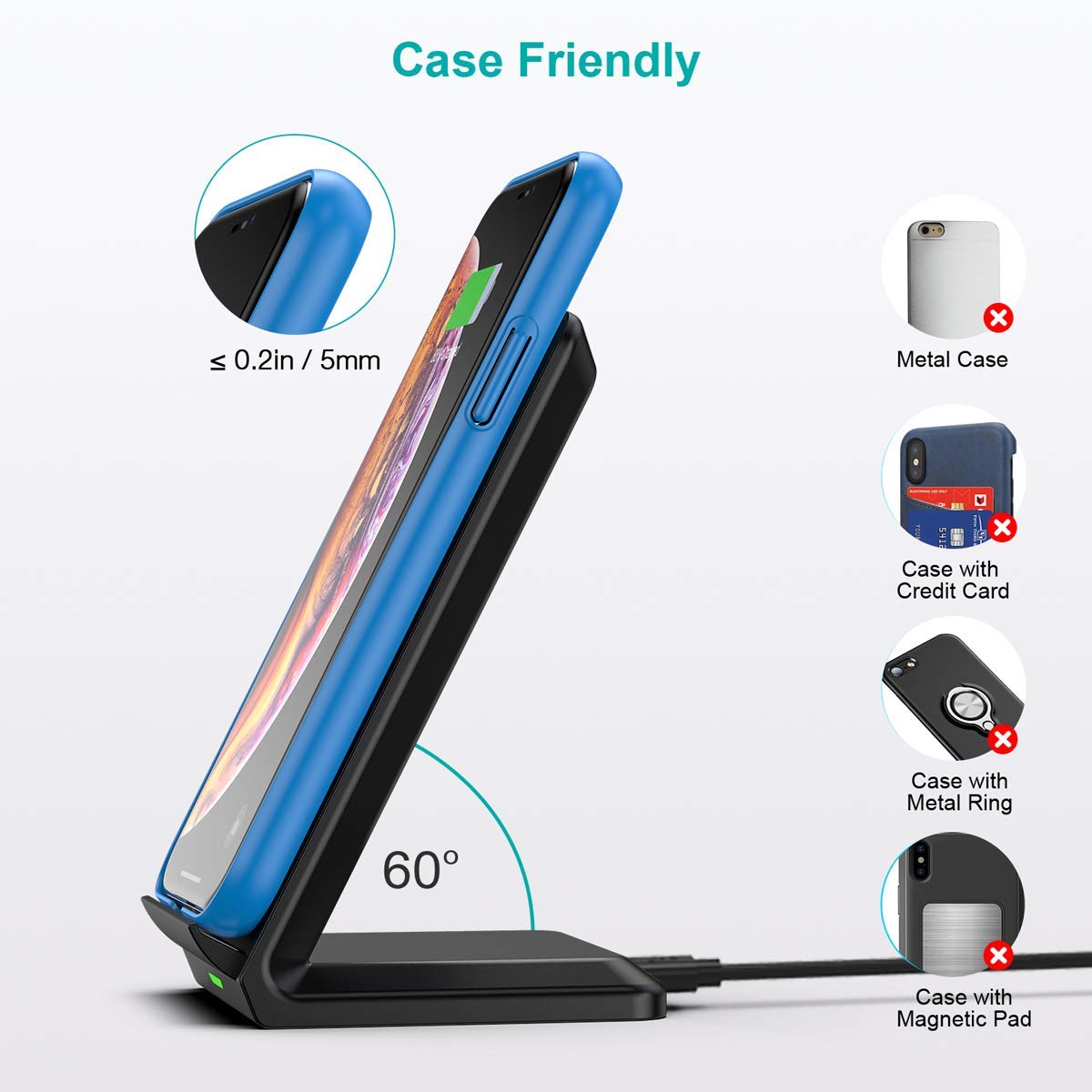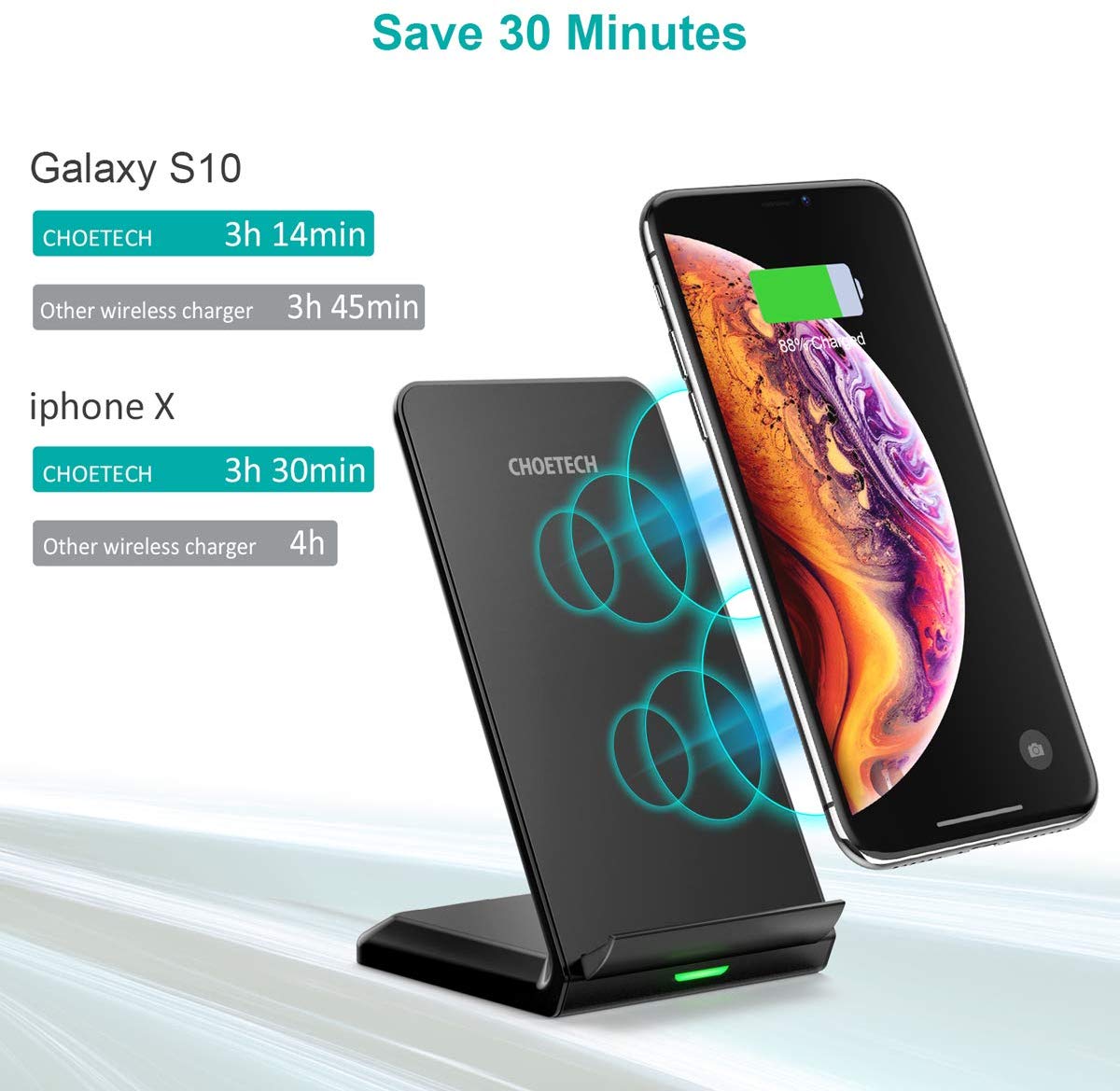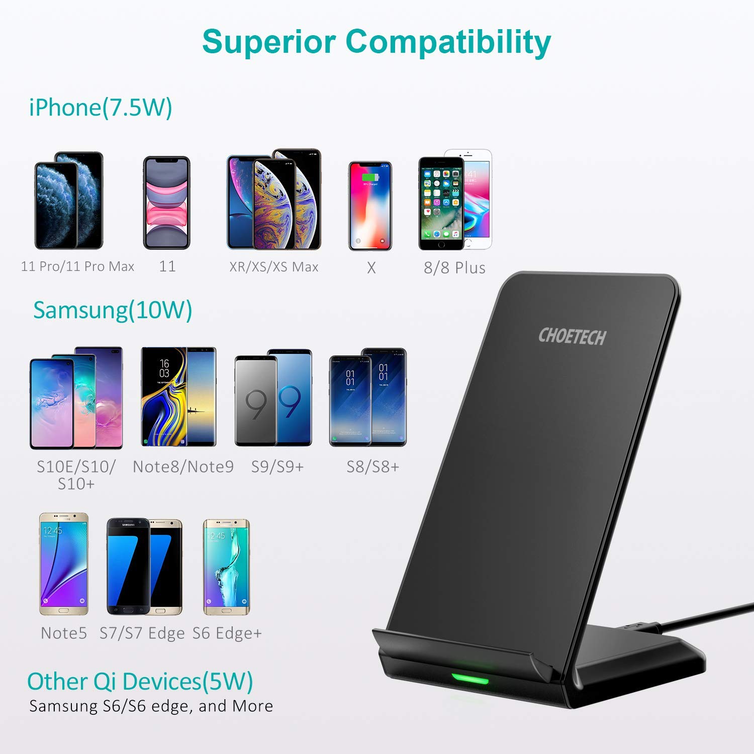 CHOETECH Wireless Charging Stand 2 Coil 10W Max Qi-Certified Fast Wireless Charging Mobile Phone Stand for iPhone SE / 11 / 11 Pro / 11 Pro Max, Samsung Galaxy