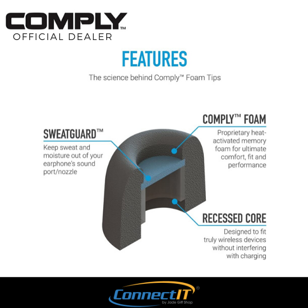 Super-soft Comply memory foam dramatically reduces earphone irritation and fatigue Comply foam is 30x softer than silicone so you have the most comfortable listening experience while you're working out commuting or just hanging out.