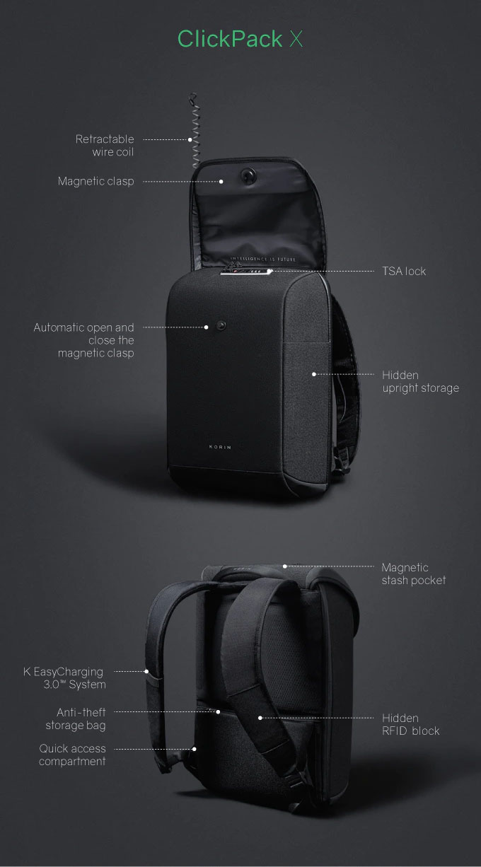 [Ship From SG] Korin ClickPack X Anti-theft Backpack | 15.6inch Laptop Bag | Kickstarter [iF Design Award Product] | Rated Top 10 Best Smart Backpacks For 2020 | Back to Office Must-Have!